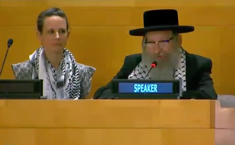 So in that way the Zionist strategy has been fucking smart. They have disguised themselves as Jews, God’s chosen people, for whom it is so bad. The rabbi in the UN assembly does not think it is bad for the Jews. He is flipping the whole thing around, as it should be, because Zionism is already a crazy project = a satanic project, and in his traditional view the real sin (a concept that does not exist as such in Judaism) is that Jews are held hostage in the project, and that there is a monster who has ‘put them on’ as a set of clothes for a perverted costume.