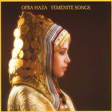 The beautiful Yemenite Jewess Ofra Haza became world famous with a record called Yemenite Songs. Her golden voice matched the outfit, where no expense was spared on the gold, so even the Queen of Sheba would be envious.