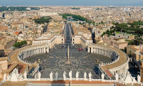 The Führerbunker of the Catholic Church, where one of the world’s largest and ugliest churches stands. Impressive perhaps, but ugly as hell. On the way up to St. Peter’s Square, as a tourist today you can buy all sorts of mass-produced bad-tasting Catholic junk. You can also leave it alone.