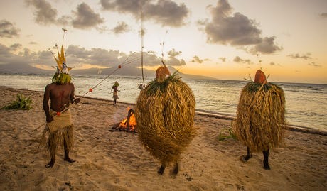 In the 1940s, the Americans arrived, because the Pacific Ocean was now their new imperial expansion field. A local cargo cult arose, because the strange flying creatures must be gods. A new cult religion preached about a savior who would free the islands from their evil spirits. Salvation came with independence in 1980.