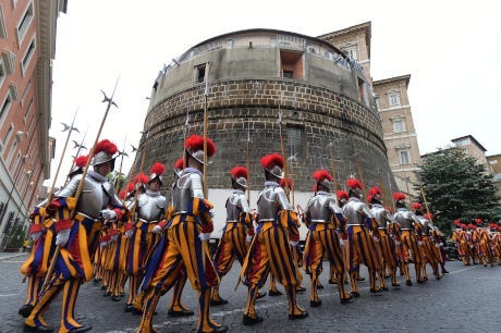 Add to that all the gold, marble and priceless art stored in the church buildings themselves. The Vatican has hired a bunch of soldiers from Switzerland to guard the Vatican Bank. And the Swiss are known to be good at guarding money.