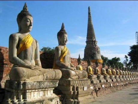 The two classic early kingdoms were Sukhothai in the 13th century and Auytthaya in from the 14th century to 1767, and its capital of the same name was 100 km up the river system that flows into present-day Bangkok, so the big ships can’t sail up there. For example, warships from foreign nations that could conceivably have sinister intentions in the era of gun boat diplomacy.