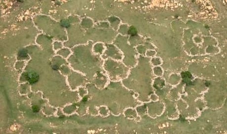 There are about a million rounded stone structures with lines of reasoning between them all over southern Africa from Zimbabwe southward. They can be seen in aerial photographs. Historians and archaeologists have dismissed them as Negro shepherds fencing in their sheep and goats.