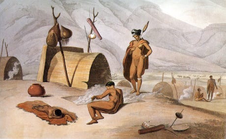 The Dutch called the people Boshemans, but Khoe-Sān is more appropriate. They are a people of small stature who know all about surviving in the bush and even in a desert. You and I would not survive more than a week in their hood.