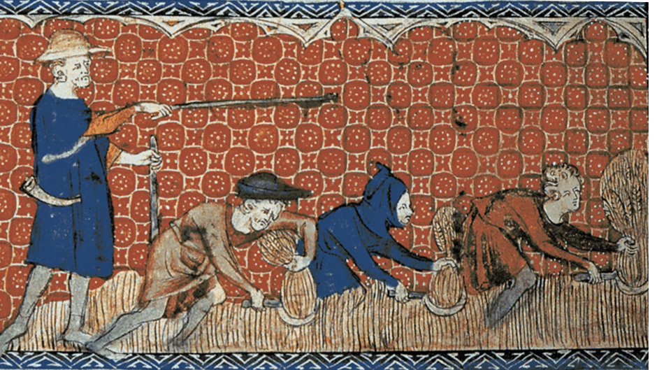 Under feudalism, it is no longer profit – that it must pay off – that rules. There is no market! Under classical feudalism, there were a lot of peasants who cultivated their crop, after which the feudal lord came and confiscated half of it. It was his land they lived on, said the feudal lord, therefore what came up of the soil would then belong to him. The only reason the peasants got half, was because they could keep pulling things out of the soil on the land. Or so that they were still alive when the feudal lord needed soldiers to confiscate what came up from the neighbor’s land – or to prevent the neighbor, who was just as sick in the head, from confiscating what came up from his soil on his land. Do we need to say, that his land was never his land, for the land belongs to the people + the living beings who inhabit it? But feudalism was maintained by the power of the sword, and the one who mastered the sword could not be contradicted.