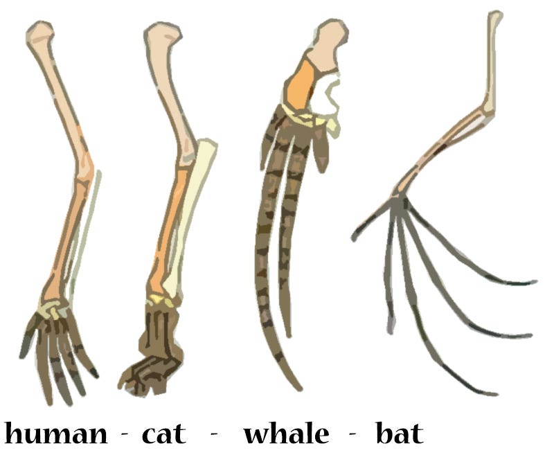 Darwinists use homological structures (built on the same logical principle …) as an argument for evolution. Behold, the beast has five ‘fingers’ in its fin. A human being has five ‘stalks’ in his hand. Ergo, it is a fish. There are plenty of examples of homological structures that absolutely do not prove a fellow species in the animal kingdom. Aside from the reproductive organs, the Australian marsupial in many ways resembles a coyote in North America. So some original wolf must have once emigrated to Australia, and mutation and selection then decided that the local species would rather get a purse instead of a uterus. There is nothing that can substantiate it, and the argument that should speak for it is what is called a circular argument.
