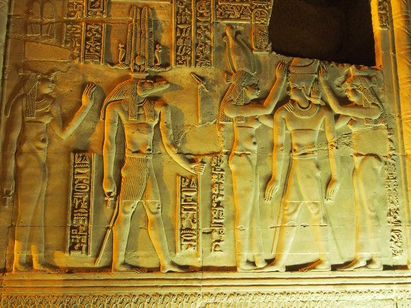 Cartouches in Kom-Ombo with Sobek and Osiris