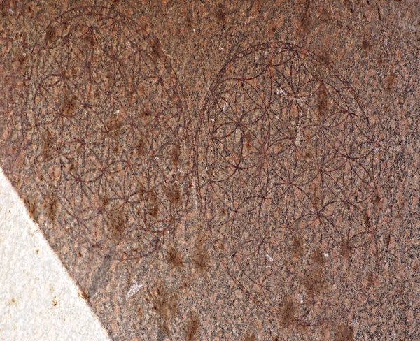 Precisely in the underground semi-flooded Osireion – the water is still there – there are some details on the pillars that make Egyptologists go completely black. In several places you see the pattern with overlapping circles called the ‘Flower of Life’. The peculiarity of the pattern is, that it is not hammered into the granite. It is found inside the stone itself – it is simply laser-impregnated! So understand it just completely: the surface of the stone shows no signs of physical processing that is like any other probably as polished or unpolished granite surfaces. The pattern is inside the stone! For the same reason, the complex is also cordoned off for tourists, so they do not have to ask too many questions to the poor local guides, who only know the official narrative, that they have memorized. And so that they do not fall into the water, fair enough again, but they could easily have built wooden bridges and corridors, if they really wanted to show this marvel to the visitors.