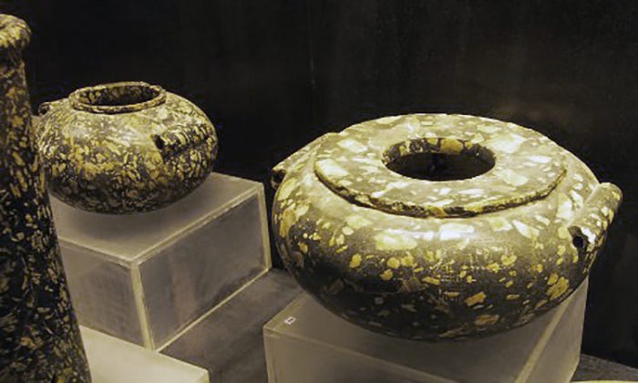 They stand around in their montres. Clay pots, you think at first. But when one discovers that they are made of one of the world’s hardest rocks, diorite, with a degree of hardness between steel and diamond, then the case is different. You also see other amazing artifacts made in scist – another extremely hard rock – and alabaster, which is easier to deal with.