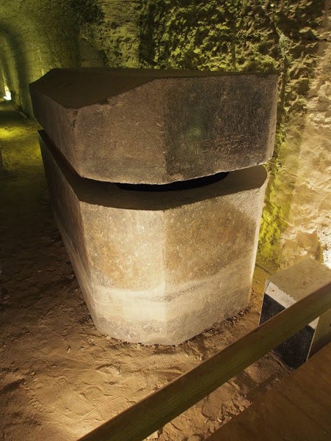 One of the most surreal places on earth must certainly be the Serapeum. You descend a long ramp to a pedestrian system where you drop your lower jaw. The main corridor is approx. 100 meters long. On each side of the wide corridor, there are niches that today are supported by strong steel structures so that they do not collapse. Or so that one could lift the lid on what is amazing: huge stone chests of 500 tons with lids weighing 300 tons. Today, they have managed to lift the lids and slide bricks in, so that the lids have been lifted for exhibition purposes. The outside of these sarcophagi is partly processed and partly raw. The inside, on the other hand, is completely smooth and precise.