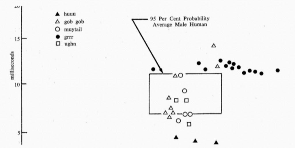 A sound expert, who was not a scientist but rather a musician and amateur researcher, analyzed The Sierra Sounds and found that there were sounds/tones that contained five octaves in the same sound. No human can do that.