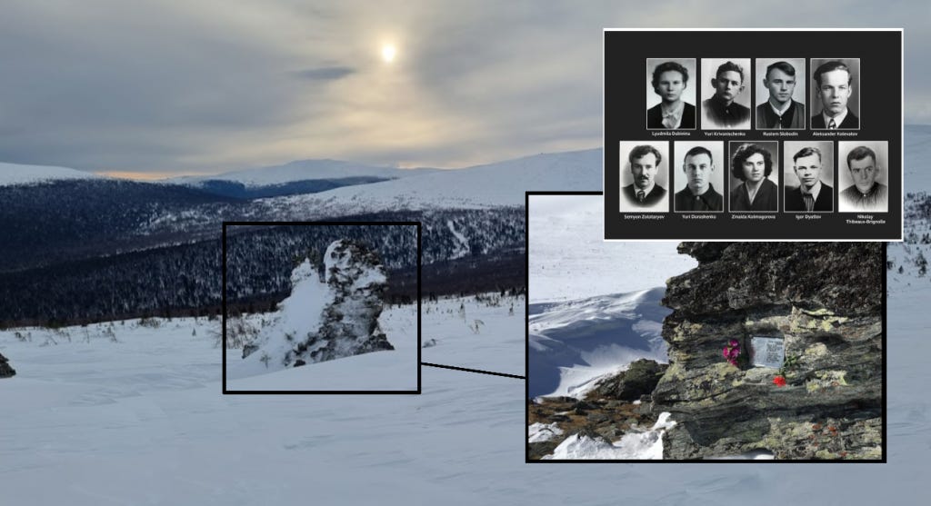 Another story reached a wide audience in the media and became known as the Dyatlov incident. Dyatlov is a mountain pass named after Igor Dyatlov, who led a group of nine young hikers. In 1959, they were on their way up the mountains in a certain area of the Ural Mountains when they were confronted by the locals down in the valley, who were very angry with them and horrified by what they were doing. You must not go up there at all costs!, they said. Why? asked the hikers. Menk!! replied the locals. Menk is the name for sasquatch or yeti in that part of the world. The group chose to ignore this.