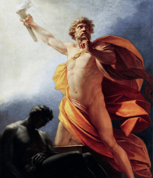Mithra is an archetype. He is found under other names. He is Perseus, and he is Prometheus. He is not a god, he is a titan. In the Vedas, a distinction is made between devas and asuras, and here he is an asura. The devas correspond to the Olympian gods in Greek. These gods, the Persians would say, were very Ahrimanic. They were tyrannical and often downright sadistic. Zeus sent a great flood after the people. He corresponds to Indra in the Vedas and Yahweh among the Jews. The devas and the Olympian gods are what the Gnostics call the archons, who are domineering figures who have wedged themselves between the people and the Source of the Universe. In Greek mythology, Prometheus sets himself up against the Olympian gods, steals their fire and gives it to the people. He actually smashes Zeus’s head with an axe. The gods punish him and chain him to a rock in the Caucasus, where an eagle pecks at his liver every day until someone frees him again. We know the story of Loki in Norse mythology. He is also a giant - a titan - who hangs out with the gods and cheats them.