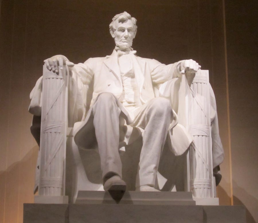 Another important symbol in American symbolism is the fasces. The name given to fascism, which is striking in its own way. But the fasces is a piece of military symbolism that says that each stick in the bundle can be broken, but as a bundle it is unbreakable. They are seen in Congress behind the podium where the president speaks. And Abraham Lincoln sits with a fasces in each hand on his memorial. This symbol was introduced via the Mithraic influence on Roman soldiers. In cave paintings in northern Iran, Mithras is seen holding a fasces called a barsum with both hands.