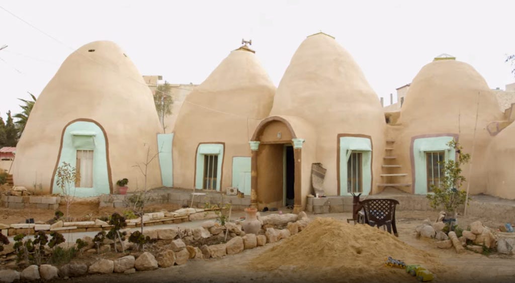 Traditionalism takes the conditions into account and adapts. In a temperate climate, houses are built accordingly. A culture lives close to river, lake and forest. Therefore, they build houses of wood or burnt clay with sloping roofs of straw from the lake shore to withstand even enormous amounts of rain. They have large windows to let in more light. Another culture lives near a desert. Therefore, they build houses of sand and clay and paint them white to keep the heat out with flat roofs, since it rarely rains, and small windows to keep out too much sunlight and the heat. Both cultures do not have access to endless resources, so they do what works and stop doing what doesn’t.