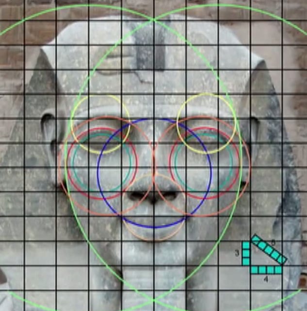 Not only is the face mirror-geometric in relation to the right and left sides, which is unspeakable without CAD software and 3D printer or milling technology today. But in addition, the construction is made according to Pythagorean and Fibonacci series principles, ie circular geometric measurements. Therefore, the face is also not the alleged Rameses II, but the Ideal Man.