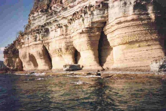 An example is the famous city located in the Valley of the Crescent in Jordan called Petra. You know: Indiana Jones and the Raiders of the Lost Arch. We have all seen pictures of the temple in Petra and think that is all. It’s only a percentage of Petra. The rest of the area is seriously strange. On the rocks above the temple – or whatever it is that lies at the bottom of the gorge – are the remains of interiors of something resembling apartments whose walls are heavily eroded. All fracture surfaces are rounded. Here and there a floor, a window, a wall, a ceiling protrudes. What the hell has happened here?